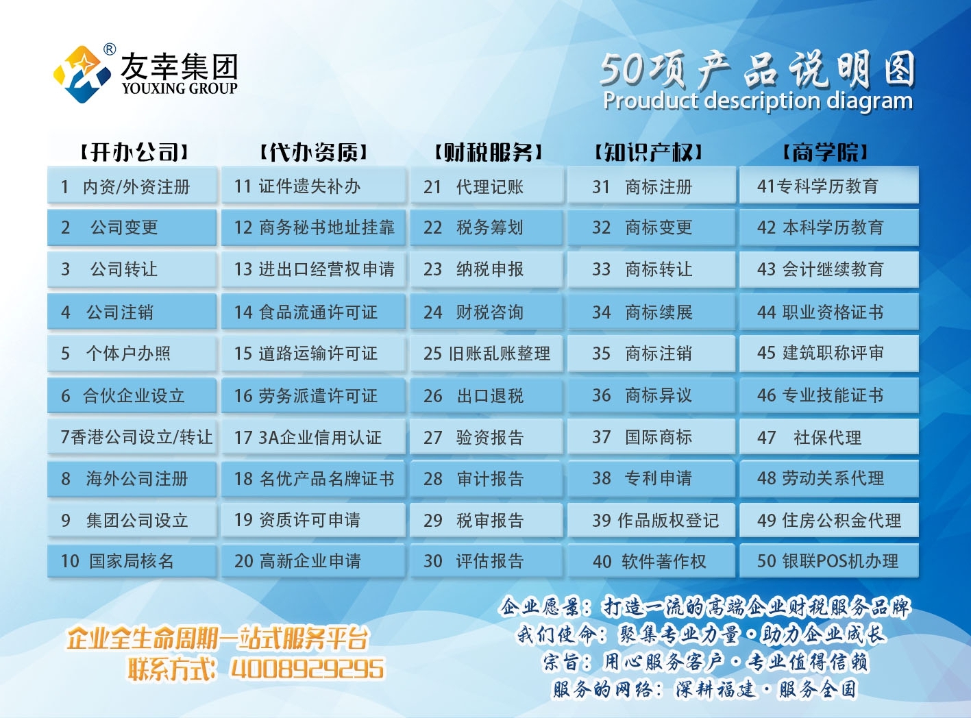 福建友幸企業管理集團有限公司是一家專門為企業提供高端財稅綜合服務集團。